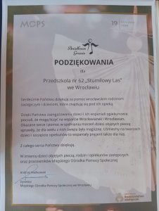 w imieniu Pani Dyrektor oraz wszystkich pracowników Przedszkola Nr 62